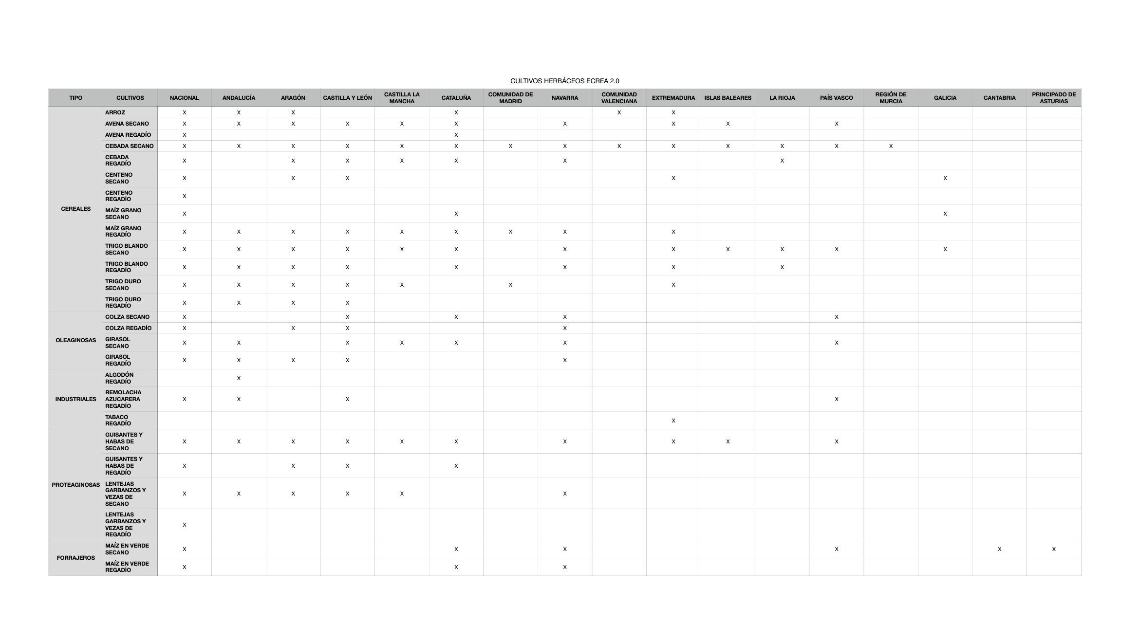 Te puedo decir, por un lado, que en la nota metodológica podrás encontrar todos los cultivos agrícolas y aprovechamientos ganaderos que van a incluirse en el estudio ECREA 2.0.