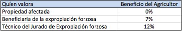 Evidentemente, tras la justificación de «dadas las características socioeconómicas de la zona» para la aplicación del beneficio del agricultor se trata de ocultar la absoluta discrecionalidad de la cifra del beneficio del agricultor, que es utilizada para disminuir el valor de la renta y, como consecuencia, la valoración de la finca rústica afectada.